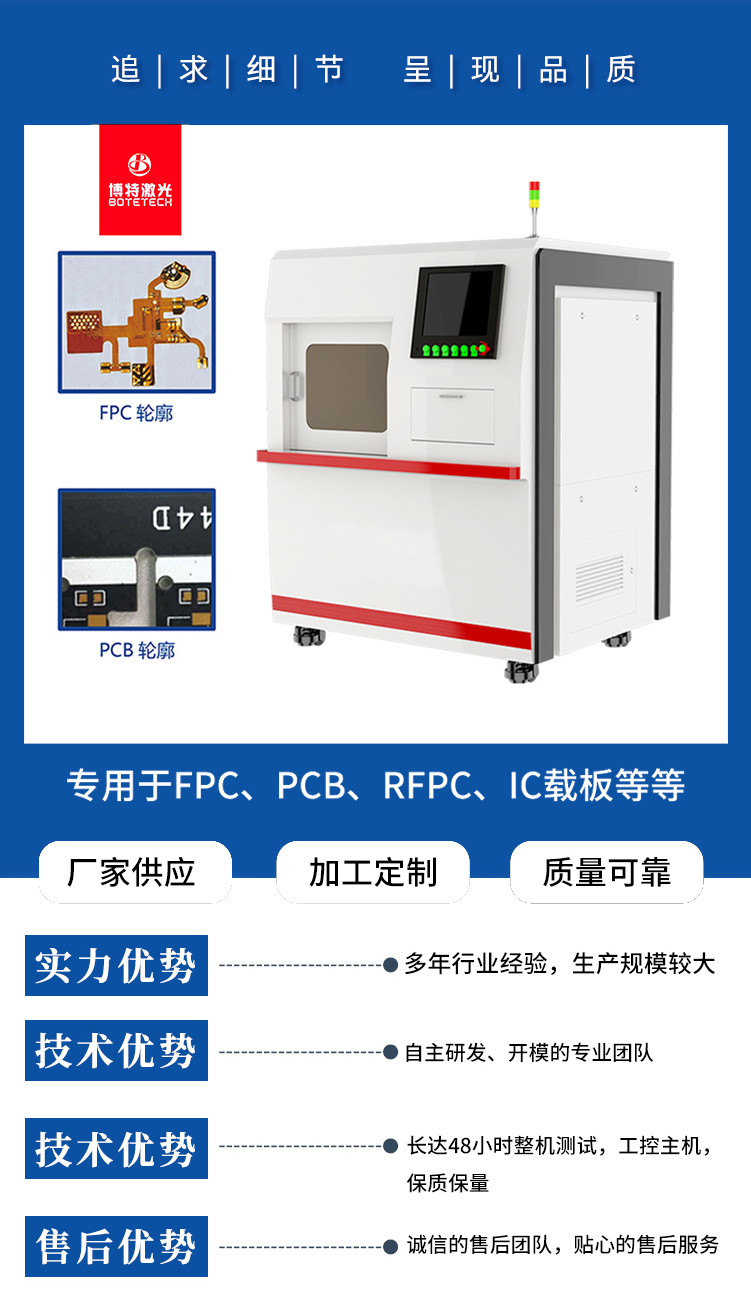 在微型孔加工方面,皮秒激光切割機能夠實現高效、精確的切割,廣泛應用于電子、通信、醫療、航空航天等領域。例如,在PCB板行業中,皮秒激光切割機可用于PCB激光分板,如FR4、補強鋼片、FPC、軟硬結合板、玻纖板等材料的切割。此外,皮秒激光切割機還可用于薄膜材料切割,如PET薄膜、PI薄膜等透明材料的切割。